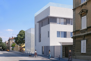 Subject Appartment building with offices and parking garage